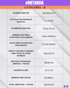 •  Categoría B: De $13.175.201,52 a $15.059.255,34