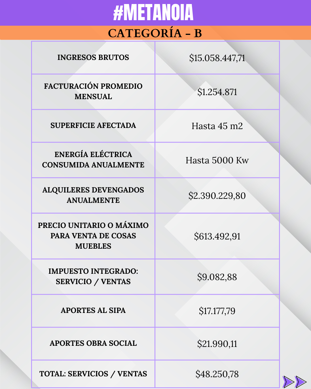 • Verificar la categoría actual y los topes de facturación que muestra la plataforma, revisando previamente las escalas vigentes.