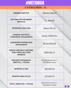 •  Categoría E: De $26.977.793,60 a $30.835.618,0