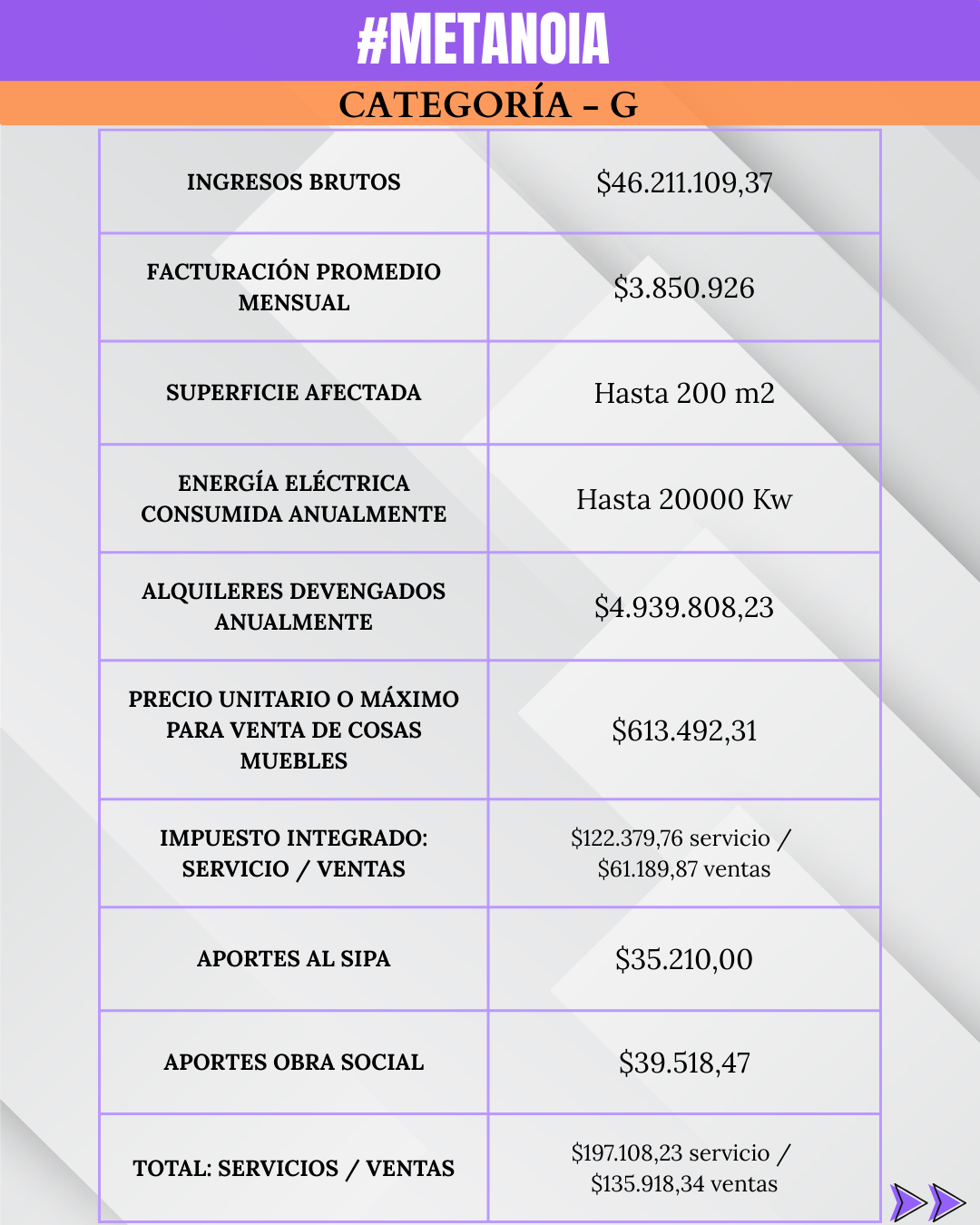 •  Categoría G: De $40.431.835,35 a $46.213.587,81