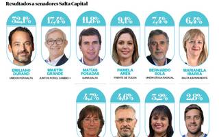 Más aplastante fue la diferencia que tuvo Durand sobre el otro candidato a senador por el oficialismo, Matías Posadas, del frente Gana Salta, quien a pesar de toda la ingeniería electoral que se puso a su favor, con varias listas colectoras por detrás suyo, terminó tercero en la elección, con 29.292 votos (el 11,87% del total).